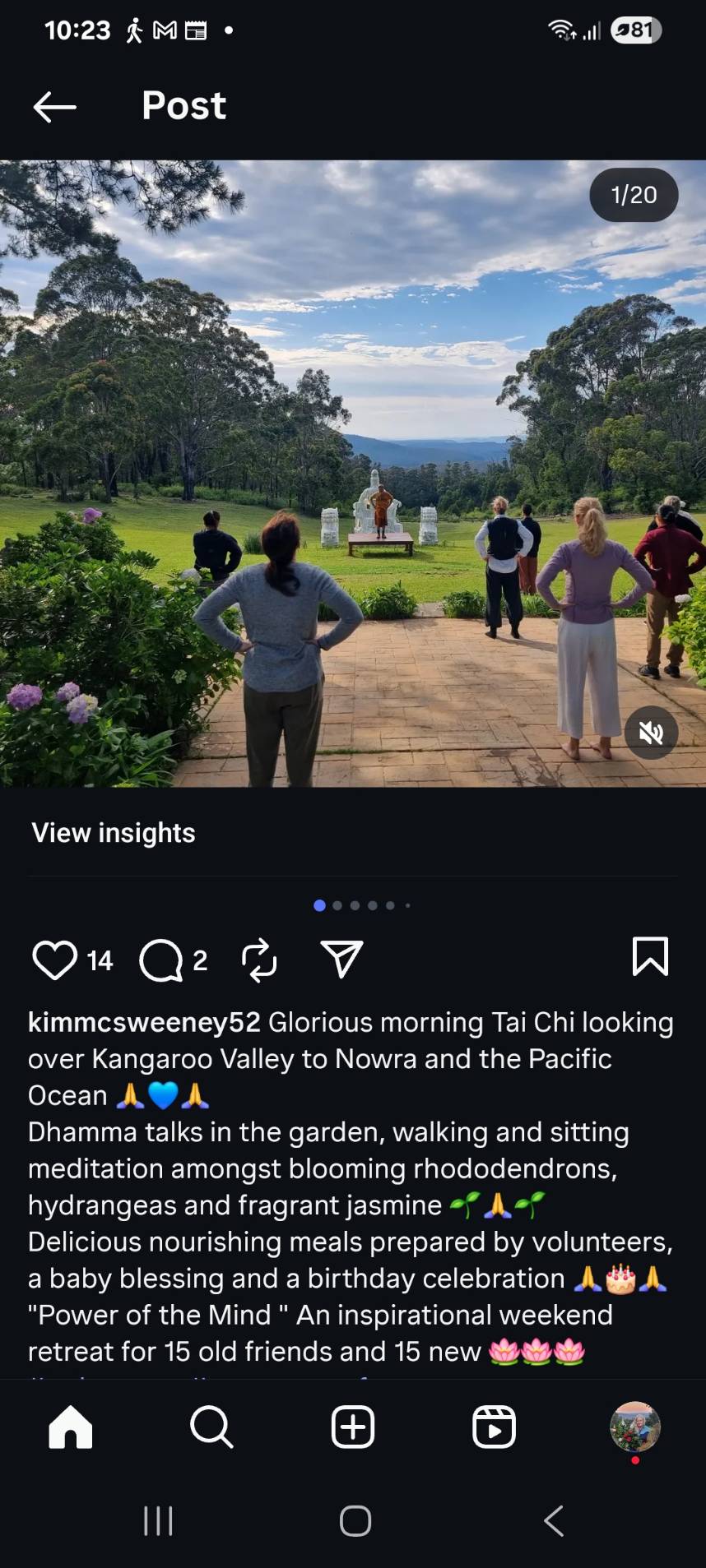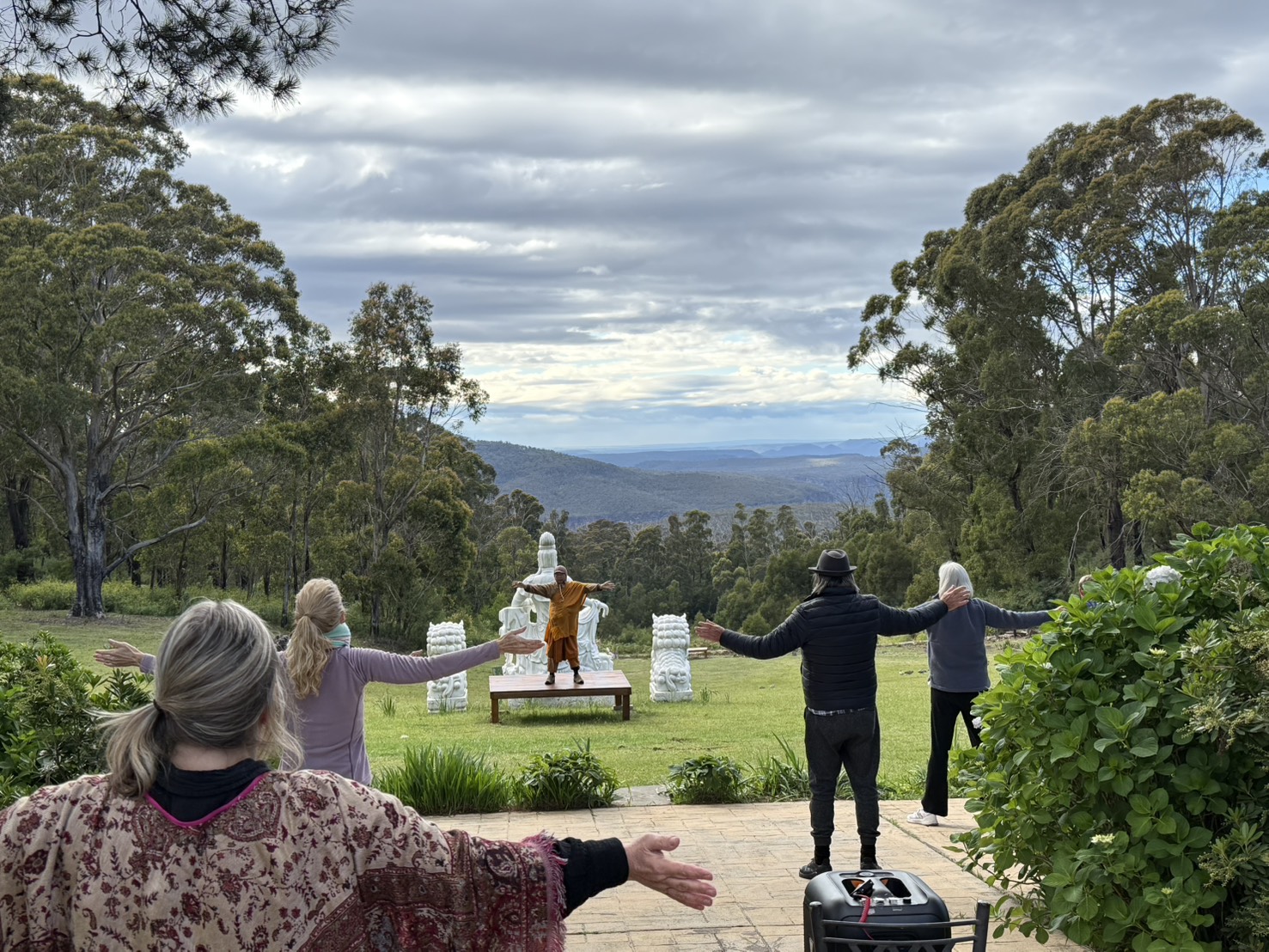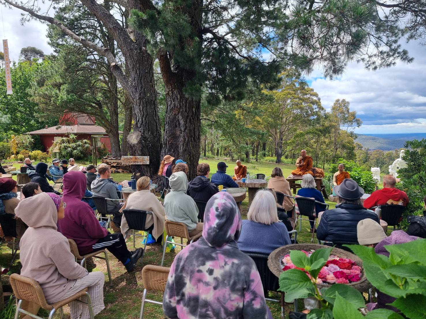 Thank you so much to the Monks volunteers and participants for making the retreat such a wonderful learning experience. To Kim I know everyone has worked so hard over many years to create the beautiful landscape and we all had the pleasure of sitting in silence overlooking the valley in the shadow of Kuan Yin. Your creative beautiful input can be seen everywhere and whilst everything is subject to change many meditators will sit for decades under the trees you have planted in their journey to enlightenment as the Buddha did under the Bodhi tree. Thank you